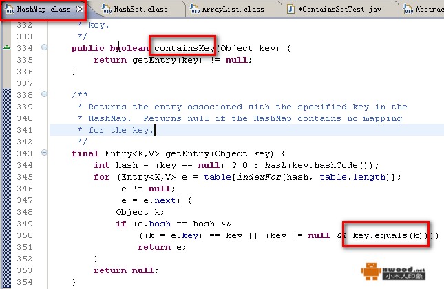class obj implements Comparable<obj>{@b@ @b@ private String a;@b@ private String b;@b@ @b@ public obj() {@b@ super();@b@ }@b@ @b@ public obj(String a, String b) {@b@ super();@b@ this.a = a;@b@ this.b = b;@b@ }@b@ public String getA() {@b@ return a;@b@ }@b@ public String getB() {@b@ return b;@b@ }@b@ public void setA(String a) {@b@ this.a = a;@b@ }@b@ public void setB(String b) {@b@ this.b = b;@b@ }@b@ @Override@b@ public int compareTo(obj o) {@b@ // TODO Auto-generated method stub@b@ return 0;@b@ }@b@ @Override@b@ public boolean equals(Object o) {@b@ // TODO Auto-generated method stub@b@ obj _this=(obj)o;@b@ if(_this==null)@b@ return false;@b@ if(!this.getA().equals(_this.getA()))@b@ return false;@b@ if(!this.getB().equals(_this.getB()))@b@ return false;@b@ return true;@b@ }@b@ @b@}但是有少部分实现的类集 contains方法是没有办法判断是否包含该对象的,如TreeSet