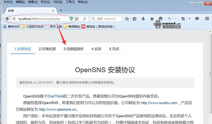 4. 再进行OpenSNS安装,问题解决(能正常进入安装opensns引导界面),如下图